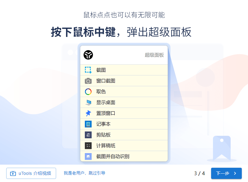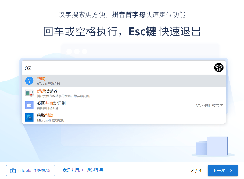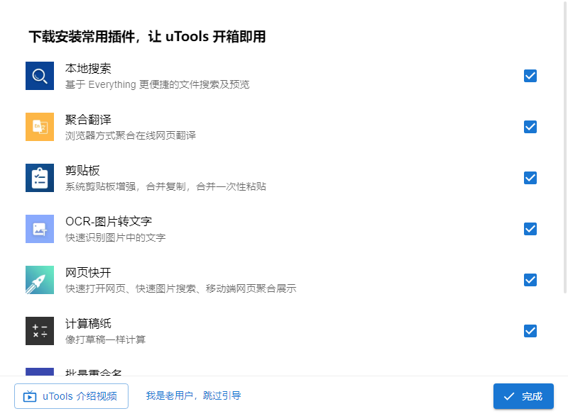 uTools 是一个极简、插件化的现代桌面软件,通过自由选配丰富的插件,打造得心应手的工具集合。通过快捷键(默认 alt + space )就可以快速呼出这个搜索框。你可以往输入框内粘贴文本、图片、截图、文件、文件夹等等,能够处理此内容的插件也早已准备就绪,统一的设计风格和操作方式,助你高效的得到结果。