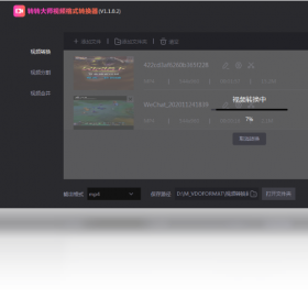 转转大师视频格式转换器是一款功能强大的专业视频转换工具,可以帮助您实现常见视频格式文件的格式转换。软件包含视频格式转换、视频分割、视频合并等多种功能,支持常见的视频格式:avi/flv/f4v/mp4/mov/mkv/mpeg/m4v/mpg/wmv/webm/vob/ogv/3gp/swf,只需三步,即可转换视频格式,还支持自定义设置视频参数,进行视频剪辑、剪切、视频合并、视频预览等。软件界面美观,操作简单,支持批量转换大量视频文件,为您节省更多的宝贵时间。