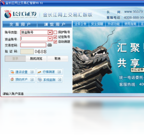 由浙江核新同花顺网络信息股份有限公司为长江证券定制开发,该版本为目前市场上具有代表性的软件之一,功能齐全。新增了融资融券业务交易功能,并集成了基金定投、报价转让等新业务的交易功能,同时还集成了长江证券自主开发的个性化服务工具金长江理财助手系统。