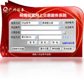 本软件适合广州证券网上交易行情,登陆步骤:打开new_gzzq_v6文件夹后双击 (0TdxW)启动程序。点“独立行情”登陆,即可使用。资金数据(非凡数据)界面切换在面板左上角,界面切换自然;查询资金数据时,跟平时一样直接在键盘精灵输入代码则可。