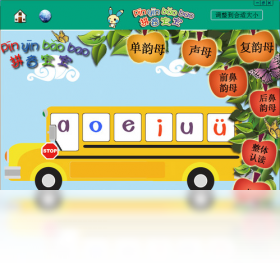 六月启明新推出的儿童拼音学习软件。适合学龄前及刚入学的儿童学习,能够帮助儿童快速学习拼音,从动画和语言上领悟学拼音的乐趣,更快达到标准音的效果。“拼音宝宝”主要包括单韵母、声母、复韵母、前鼻韵母、后鼻韵母等拼音学习及相应的诗歌,还包括整体认读、儿歌学习等,声音与动画配合得惟妙惟肖,能够使儿童快乐学拼音、唱儿歌。