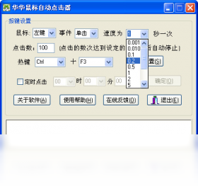 华华鼠标自动点击器是一款优秀的鼠标辅助工具。如果你在平时的游戏或是工作中经常需要大量点击鼠标左键或右键,如果你喜欢玩网络游戏,RPG游戏,那么一定有大量点击鼠标的经验,非常浪费时间,这个小软件可以解放你的手指。