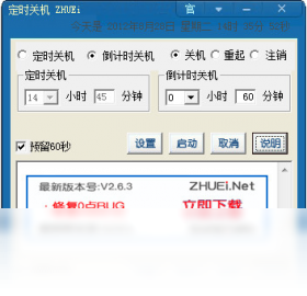 主要功能包含重启、关机和注销,操作方式有定时或倒计时可供选择。