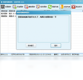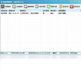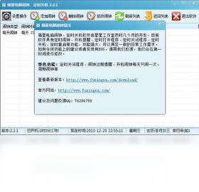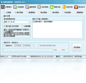 福星电脑闹钟是一款具有定时提醒、定时关机、定时打开程序、定时关闭程序的软件,同时还具有定时休眠、定时注销、定时锁定、定时宽带连接、定时断开宽带连接等功能于一身的软件,功能强大。定时提醒功能可选择一次提醒、每周提醒、每月提醒、每年提醒、开机提醒、周期提醒等多种提醒功能。 同时福星闹钟还可以根据设定鼠标键盘无操作时自动待机、自动锁定、关机等操作,提供了百度对时中心进行网络对时。 福星电脑闹钟占用极少的内存,软件最小化后仅占用1M多的内存,速度飞快,是同类软件中的佼佼者。