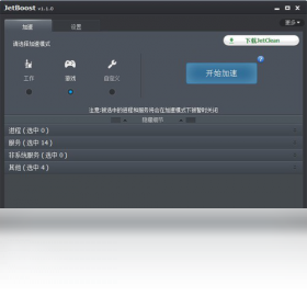 虽然到了这个年代,软件优化系统已经成为一个过时的话题,但JetBoost却是一个非常独特的系统提速工具,特别是对老电脑而言,使用该软件能够帮助我们根据不同的使用需求切换优化状态(游戏、工作或是默认),优化方式是通过关闭某些使用环境下不必要的系统进程等来实现,确保老硬件以最高的效率运行相关程序,达到提高运行速度的目的(当切换会正常使用环境时,那些被关闭的进程会重新开启),感兴趣的朋友们不妨了解下。