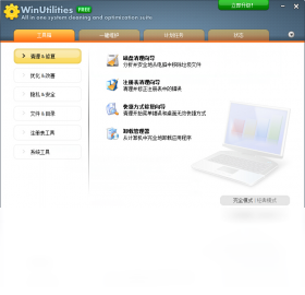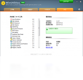 一套Windows系统优化工具。具有磁盘清理、注册表清理/备份、自启动程序管理、内存优化、查找重复文件、快捷方式修复、进程管理、卸载管理、系统信息、文件分割/合并、文件清除、可执行文件加密、家长监视控制以及调用Windows系统自带小工具等诸多功能。