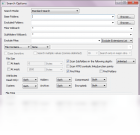 SearchMyFiles 是使用系统搜索文件和文件夹模块的另一选择。它可以使你很容易的通过通配符、最后修改/创建/访问时间、文件属性、文件内容(文本或二进制搜索)和文件大小来搜索文件。
