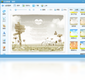 QQ影像是腾讯公司最新推出的一款桌面图片处理软件。以其清爽的界面、简洁轻便的操作,为您提供处理图片一站式体验。打开本地图片,轻松浏览,无干扰看图体验。美白祛痘,调曝光,加文字,剪裁图片,修改大小,更多便捷功能。一键上传到QQ空间,分享最新照片,朋友互动更方便。柔美虚实,清晰色彩,打造自己的个性图片。 多彩相框,变换不同风格,可爱搞怪,装点心情。快速扫描本地图片,帮您迅速定位文件夹,管理图片。