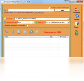 Metacafe Video Downloader界面非常的简洁,使用起来非常的方便快捷,下载下来的视频支持保存成avi, .mpeg, .flv, .wmv等格式,下载下来的视频可以保存到任何的地方,如,电脑, Ipod, 苹果机, PSP, 手机(zsh)。