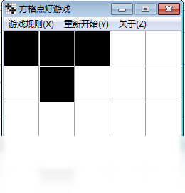 点击一个格子,它和周围四个格子的颜色都会由白变黑或由黑变白。当25个格子全变成黑色时,游戏胜利。