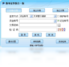 渤海证券合一版交易软件提供多界面自由切换、多种登陆模式,操作简便快捷,功能强大、齐全、速度快。