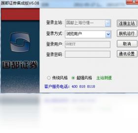 本软件适合上海国都证券网上交易行情,登陆步骤:打开jcb_guodu文件夹后双击 (0TdxW)启动程序。点“独立行情”登陆,即可使用。资金数据(非凡数据)界面切换在面板左上角,界面切换自然;查询资金数据时,跟平时一样直接在键盘精灵输入代码则可。