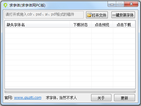 求字体操作简单,用户只需要打开或者拖入稿件,然后选择打开文件,软件会自动识别缺失字体,然后点击下载就可以了。