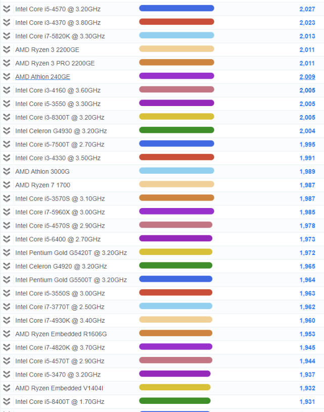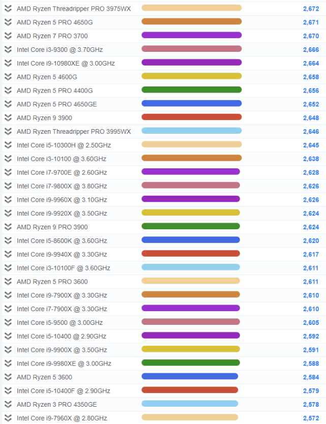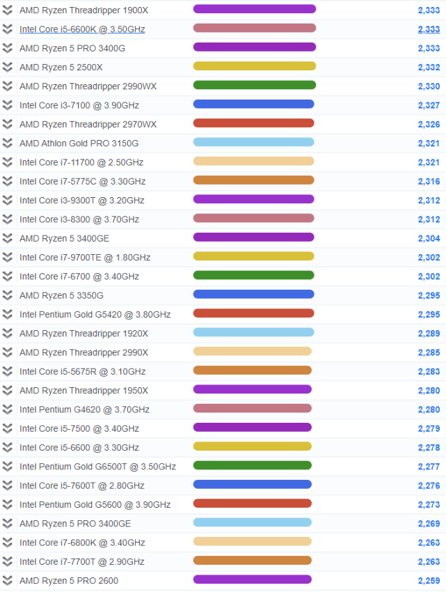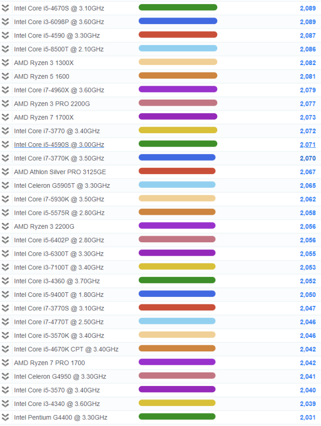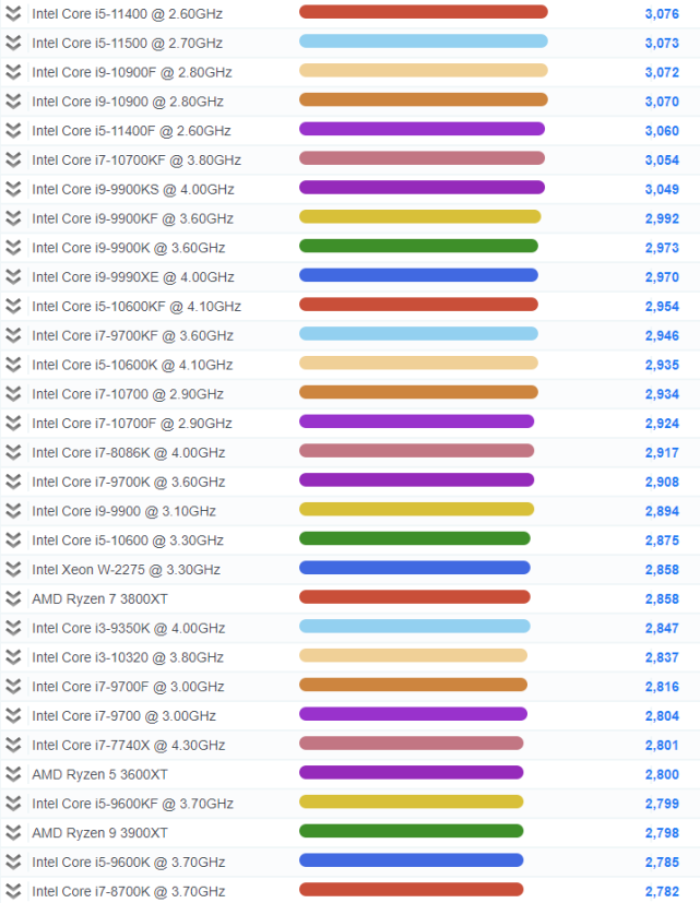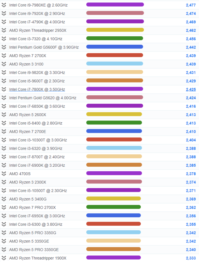 2021CPU单核性能排行大图
