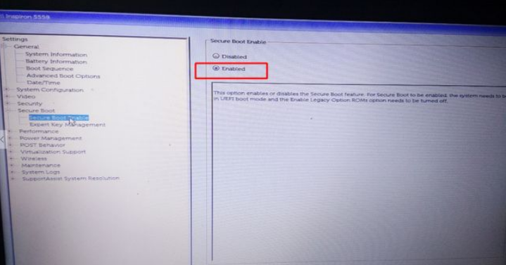 3、Secure Boot下,点击Secure Boot Enable,选择Enabled;