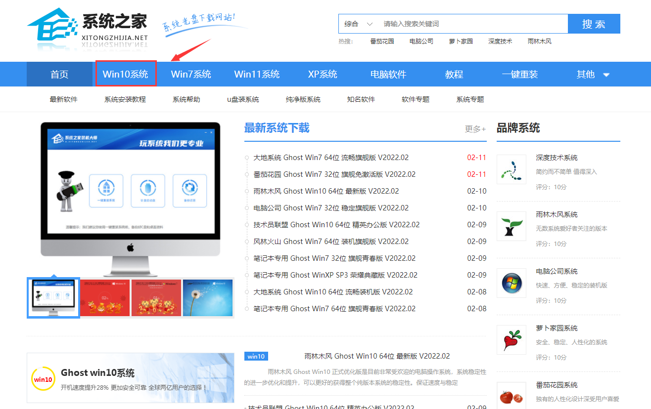 2、进入系统之家网站,选择Win10系统栏目,选择自己喜欢的Win10系统下载。