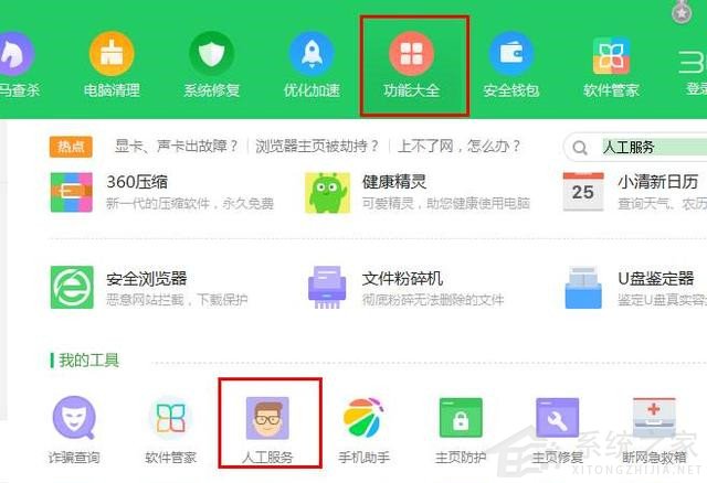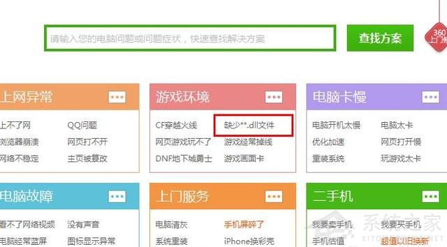 我们最简单的方法就是用360安全卫士,前往下载>>>,在功能大全中找到人工服务,然后点击缺少**.dll文件。在搜索结果中找到提示中丢失或未找到的dll文件进行修复,操作是非常简单的,一键操作,修复完成。
