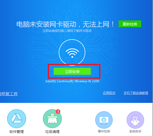 8、接下来,您可以看到驱动程序软件已经安装,然后单击检测网络按钮查看周围是否有可用的网络。