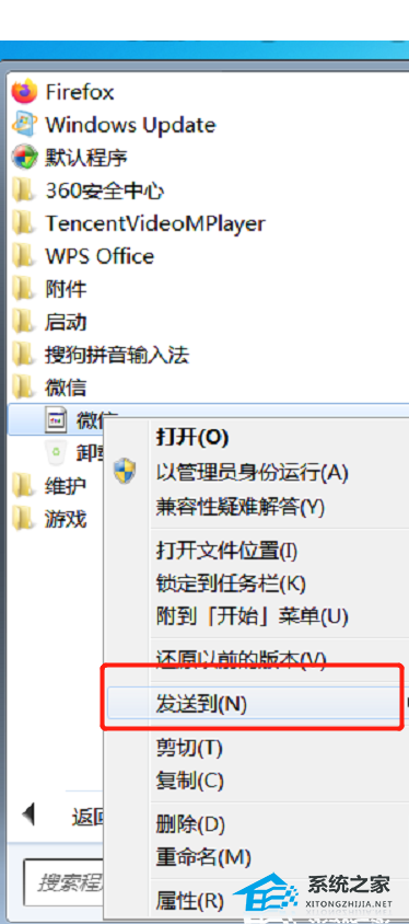 4、在发送到弹出的窗口中选择桌面快捷方式。