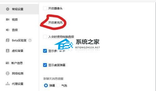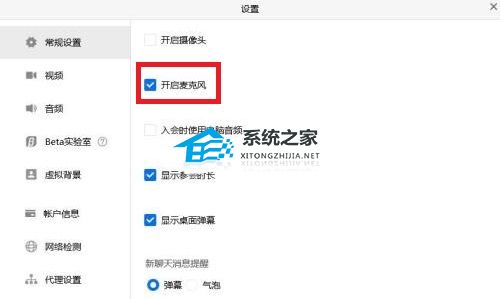 3、之后可以进入“常规设置”看到“开启麦克风”是勾选的。