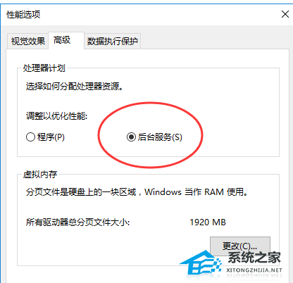 5、把调整以优化性能选到“后台服务”。然后点击确定。有的会提示重启,有的不会提示,提示重启的重启就行了。