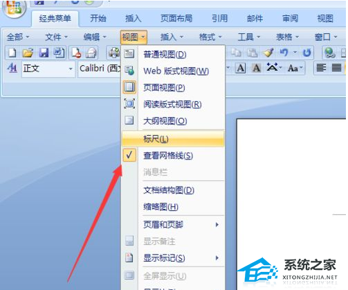 6、除了以上方法,也可以直接在经典菜单中,查看下拉框,移到视图选项,然后点击网格线即可。
