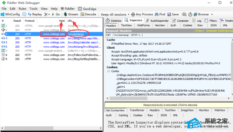 1、打开fiddler后,左边会话框区域刷刷刷的很多请求,那么如何有效的找出自己需要的请求呢?