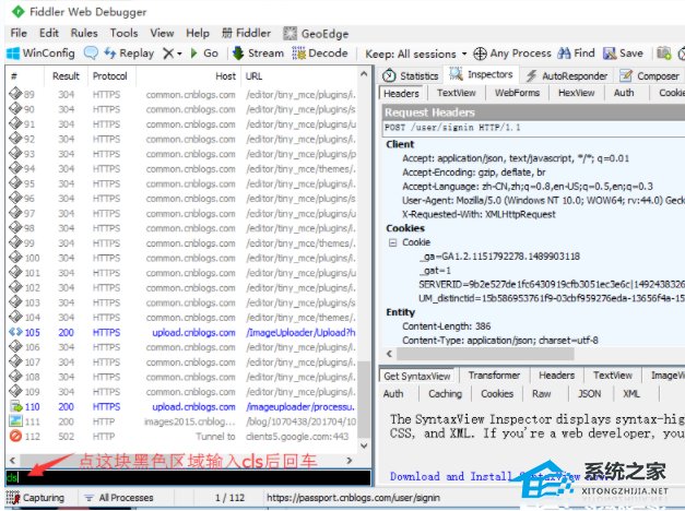 在点击登录按钮的时候,不要做多与的操作了,然后查看fiddler会话框,这时候有好几个请求。