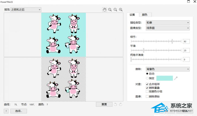 3、此时就会自动打开PowerTRACE界面,界面就会有抠图前和抠图后的一个图形对比,一般点击“ok”就可以完成抠图操作了。