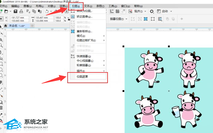 2、其次就是点击顶部的“位图”中的“位图遮罩”。