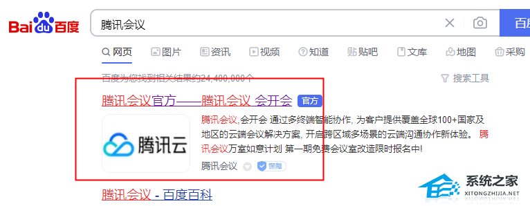 2、在搜索结果之中点击“腾讯会议官方”。