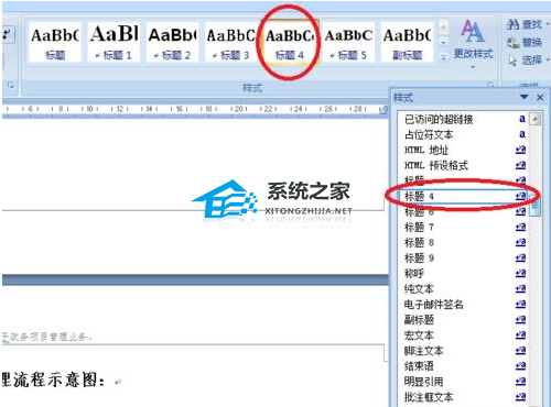 4、返回到样式窗体列表中,会发现列表中多了“标题4”及其他更多的样式项,把你想要增加到样式功能区的样式项,用鼠标点击一下,即会将样式项增加到样式功能区了。图例中,正是增加了“标题4”。可以看到样式功能区中同时增加了“标题4”样式。