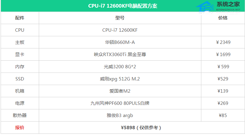 注:由于电脑硬件更新换代步伐较快,如果有产品停产请使用新产品替代。另外,硬件价格会随着行情变化会有浮动,请参考当天价格为准,所有组装电脑配置清单价格仅提供参考。