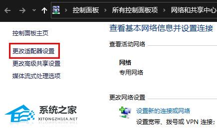 4、之后点击左侧的“更改适配器设置”。