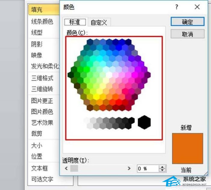 7、选择其他颜色后出现一个颜色设置界面,可以直接在图示的红色线框区域内选择你需要的颜色。如果这里依然没有你需要的颜色,那么还可以使用下一步骤的方法。