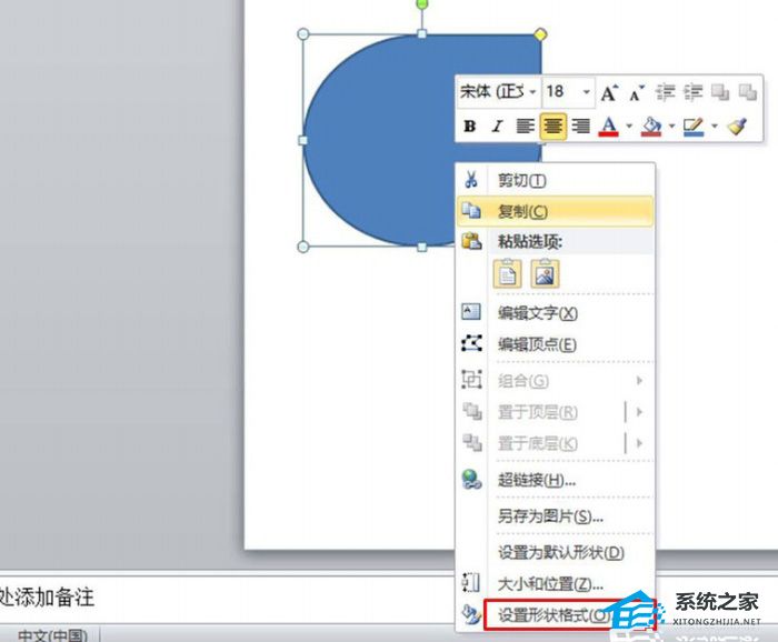 4、点击鼠标左键选中图形,然后点击鼠标右键,在右键的选项中选择设置形状格式。