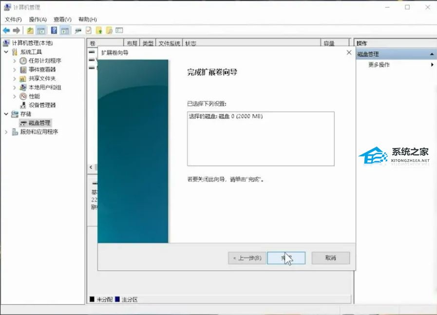 6、后选择需要扩展的空间量,并点击完成就能把d盘的空间分给c盘了。