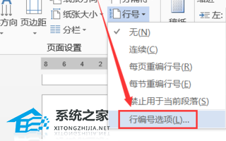 2、在下拉菜单中选中“行编号选项”。