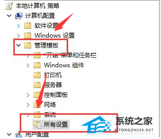 3、打开计算机配置菜单下的管理模板,点击所有设置。