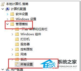 4、然后进入“计算机配置”-“管理模板”中的“所有设置”