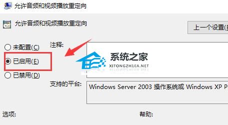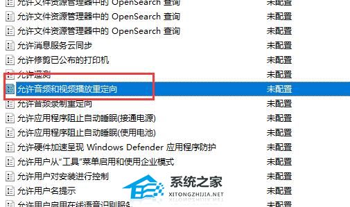 5、在列表中找到并双击打开“允许音频和视频播放重定向”