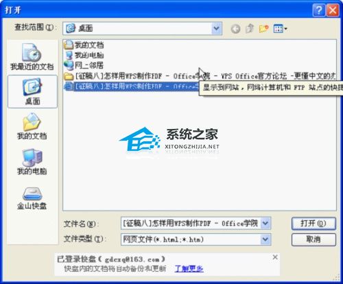 2、用WPS文字打开html文件。执行“文件”→“打开”,文件类型选择“网页文件”或“所有文件”,以打开刚才下载得到的html文件。