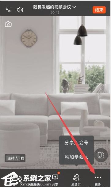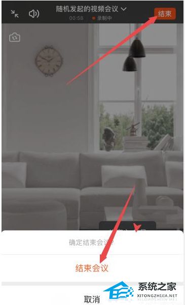 3、等到会议要结束的时候,点击右上角“结束”,然后点击“结束会议”。