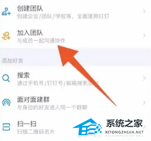 3、跳转到添加页面之后,找到页面中的【加入团队】这个选项并点击。