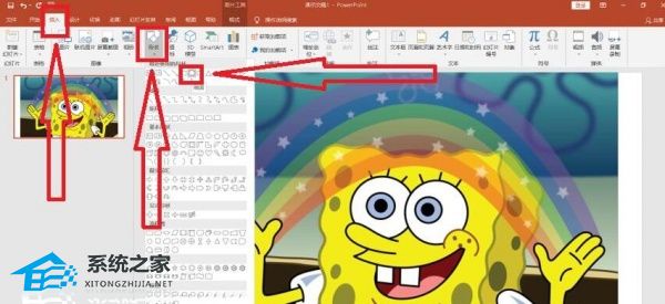 双击打开PPT,在工具栏中点击“插入”,单击“形状”选项卡,选择圆形。