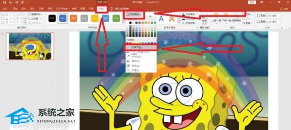 点击上方的“格式”,找到“形状填充”并点击,选择“无填充颜色”。