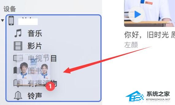 6、鼠标左键按住想要导入的音乐,将它拖动到左边的“设备”里就可以导入到手机了。