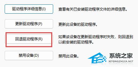 4、最后进入驱动程序选项,使用“回退驱动程序”回到之前使用的驱动就可以了。