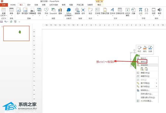 接着右击叶片——点击复制——然后同时按ctrl+v粘贴,粘贴3个。