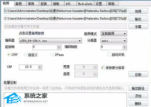 4、设置完毕后,直接选择压制。然后等待视频压缩完成。